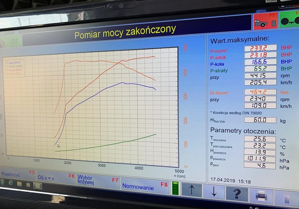 Nowa, napisana od podstaw przez nas mapa, pozwoliła osiągnąć wynik 233 HP i 464 NM. Jak twierdzi Klient, teraz czuć różnicę. A co ważne, mapa wciąż jest bezpieczna dla silnika i skrzyni.