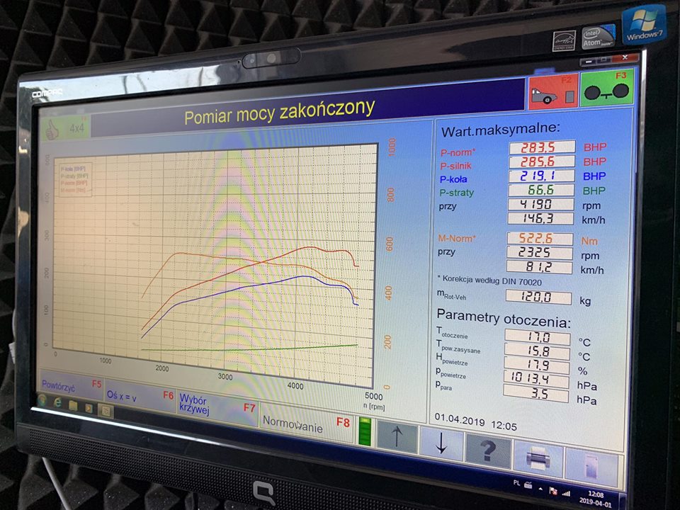 Po naszych modyfikacjach, osiągnęliśmy w pełni bezpieczny dla skrzyni i silnika wynik na poziomie 283 HP i 522 NM. Tę różnicę naprawdę czuć, a co ważne, zmniejszy się pobór spalania na poziomie około 1.2L / 100 km!